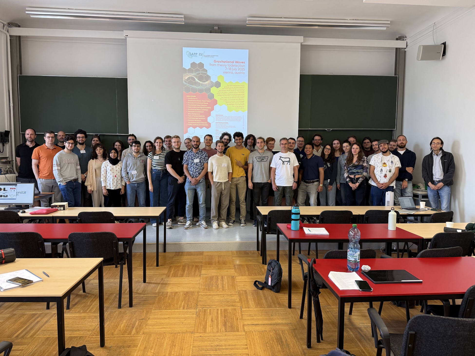 ISAPP is a consortium of 40 European Institutions that organize Doctorate Schools on Astroparticle Physics for more than 20 years, https://www.isapp-schools.org. The Vienna Institute of High Energy Physics of the Austrian Academy of Sciences is a member of the consortium. The school was originally planned to be hosted and financially supported by the Erwin Schrödinger International Institute for Mathematics and Physics (ESI) which is a beautiful workshop space on Boltzmanngasse in the Vienna 9th district.