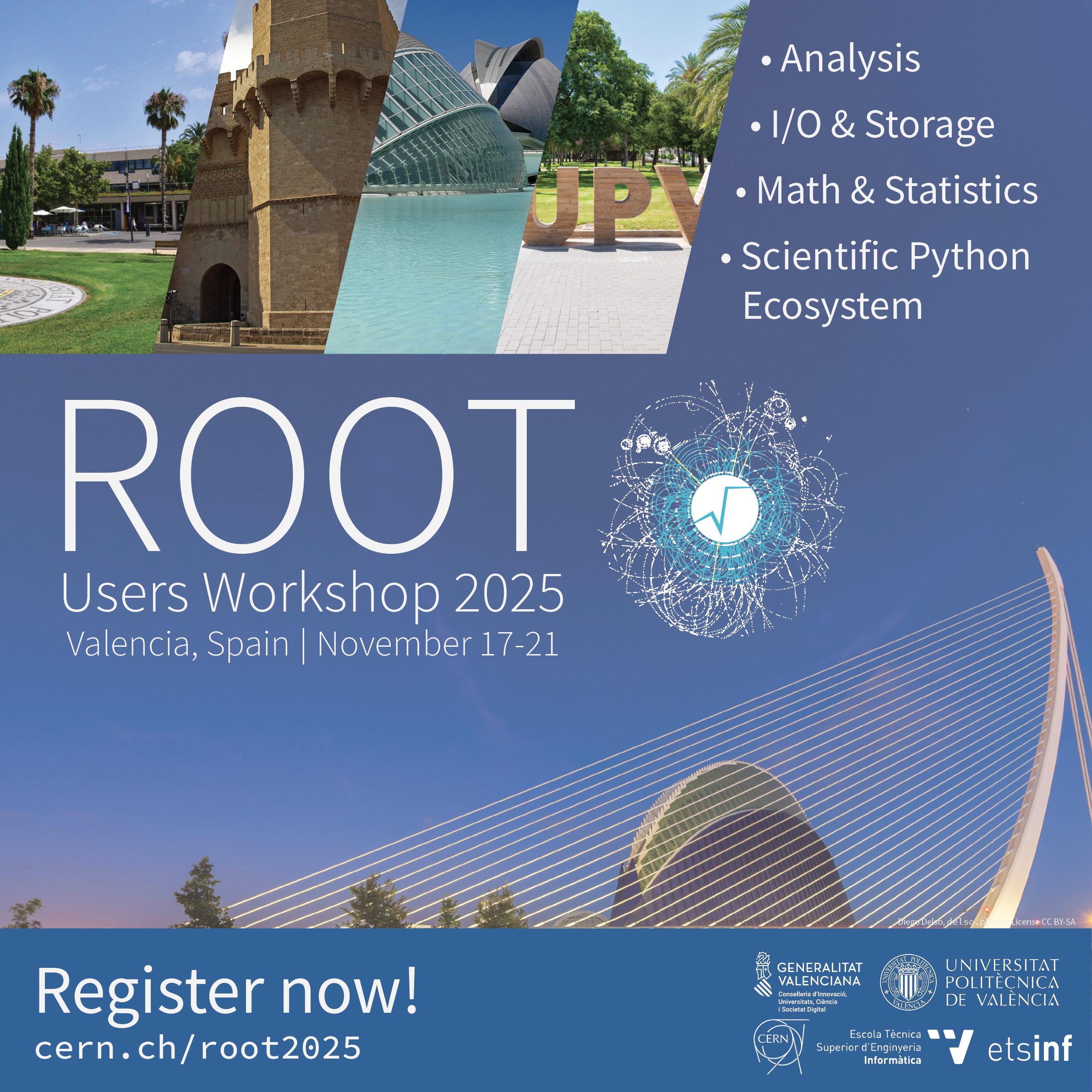 The various images used to announce the workshop online and offline, on social media, on displays, in emails and at the location venue are a work of Florine de Geus and kindly granted for the benefit of the ROOT Users Workshop 2025.