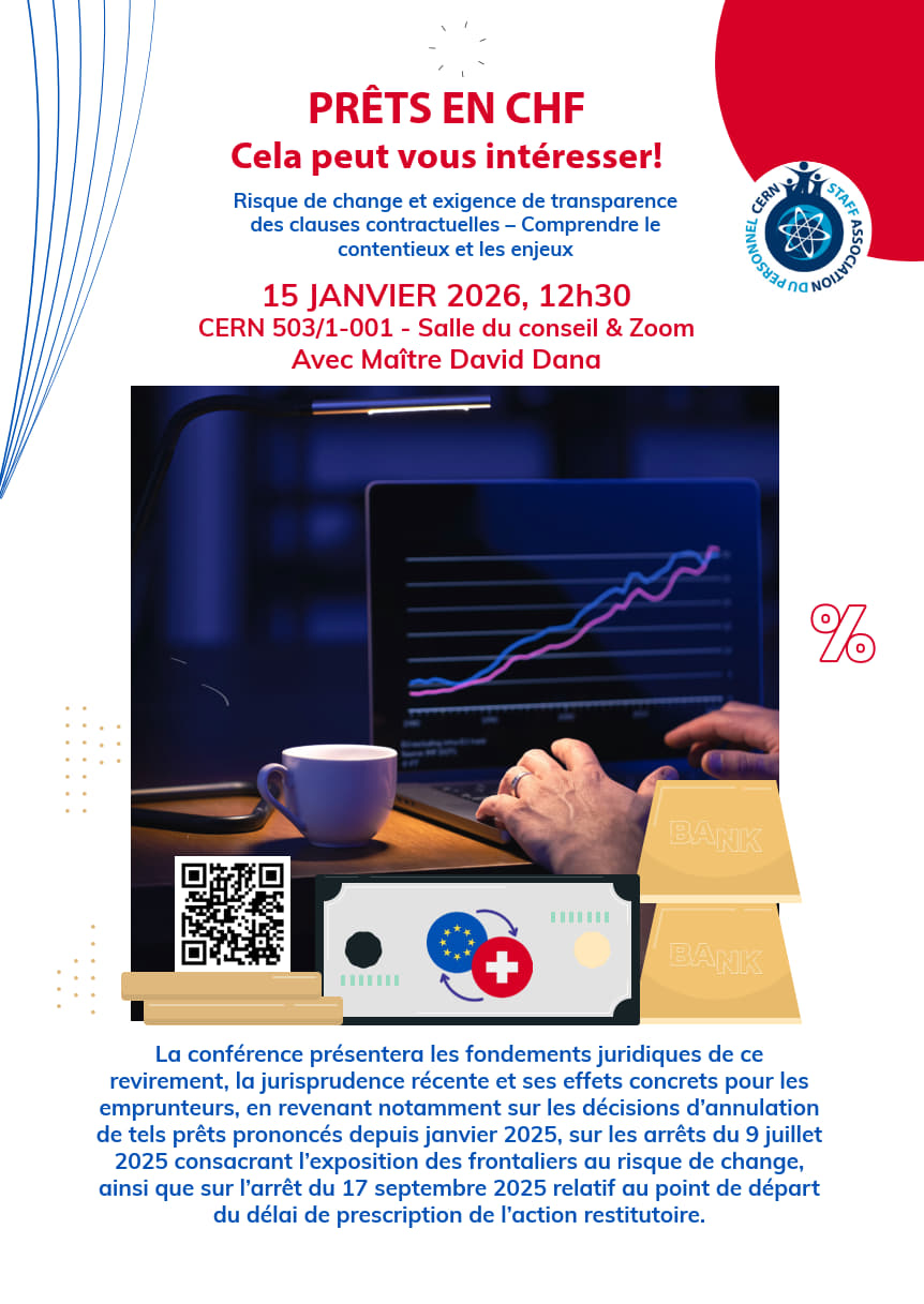 La conférence présentera les fondements juridiques de ce revirement, la jurisprudence récente et ses effets concrets pour les emprunteurs, en revenant notamment sur les décisions d’annulation de tels prêts prononcés depuis janvier 2025, sur les arrêts du 9 juillet 2025 consacrant l’exposition des frontaliers au risque de change, ainsi que sur l’arrêt du 17 septembre 2025 relatif au point de départ du délai de prescription de l’action restitutoire.